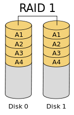 In RAID 1, data is writing simultaneously in two disks. It consists of exact set of data (mirror) on two or more disks. If one disk failed, the data can be retrieved from the other disk.