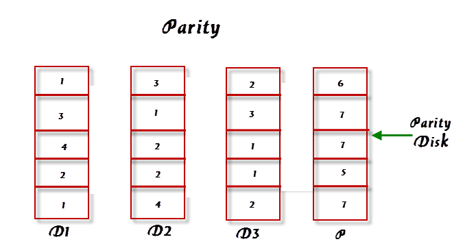 The parity bits are used to recreate the data during the disk failure. Parity information can be stored a separate disk or can be stored across all disks.